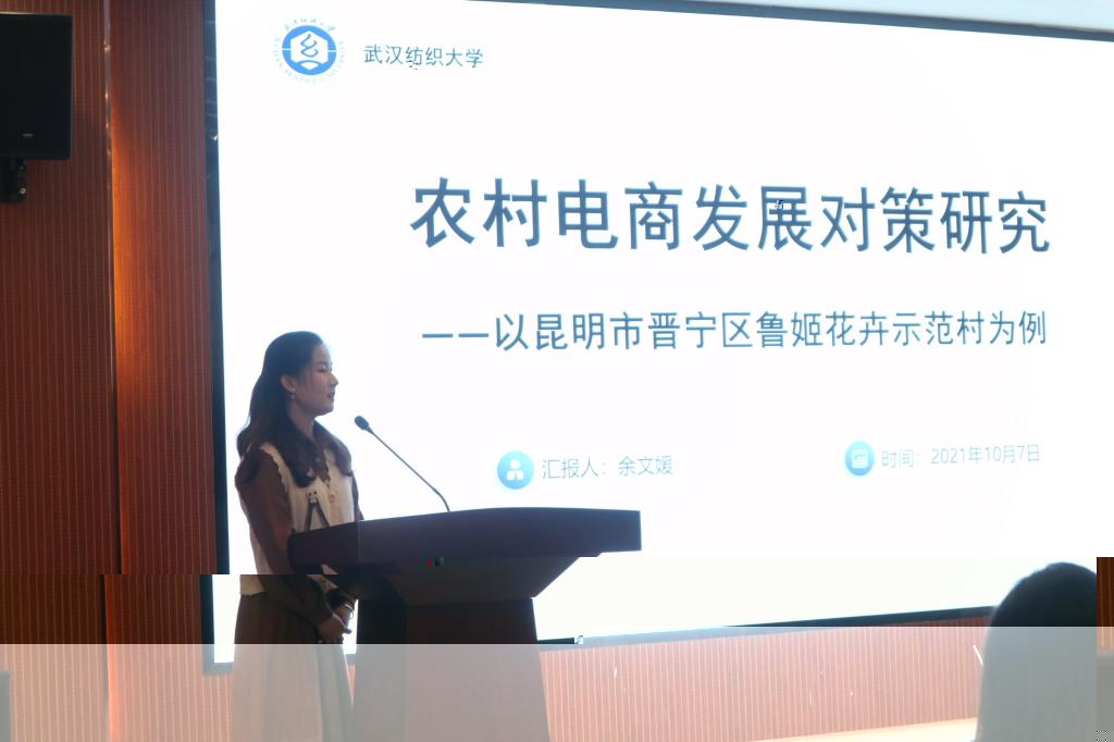 張佳琪同學以《鄉村振興背景下電商助農的困境與路徑探索——以東川區農村電商發展為例》為題,分析探讨了如何借助互聯網優勢實現農村産業轉型升級、農民增産增收和農村經濟持續健康發展,提出了完善農村電子商務扶持政策、加大核心技術人才引進力度、加強農村電子商務保障監管、推動以龍頭企業為首的品牌集群建設的解決方案。