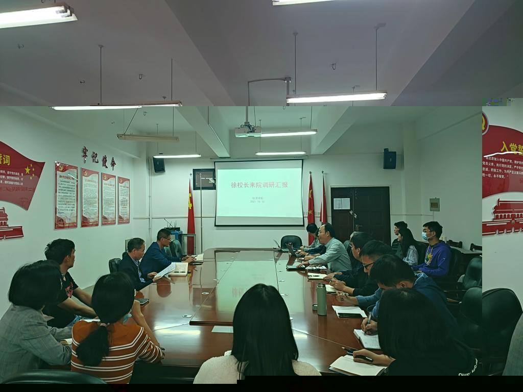 10月12日下午,校長徐衛林在發規處負責人陪同下到77779193永利官网調研,聽取學院工作彙報,對學院精品建設、特色發展進行指導、提出要求。77779193永利官网黨政領導班子成員、系主任、專業負責人、科研骨幹、青年教師代表、輔導員等參加會議,會議由77779193永利官网黨委書記毛長文主持。