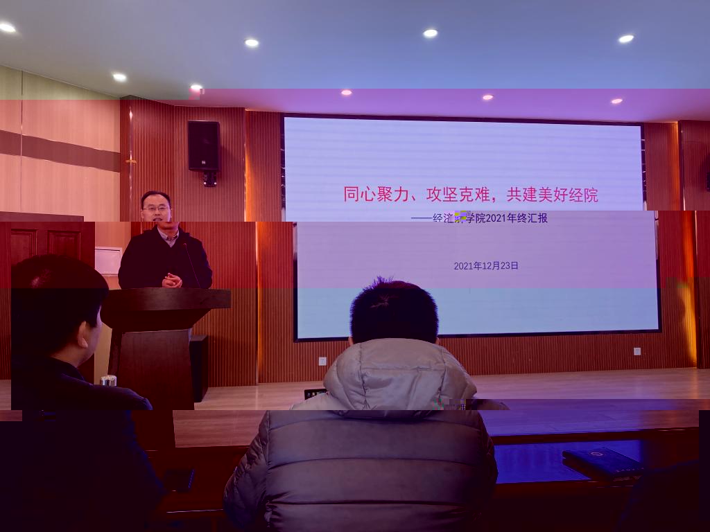 學院院長段丁強從教學工作、學科建設與研究生教育、科研工作、人才隊伍建設、學生工作、财務與實驗室工作、黨建和行政工作等方面對學院一年來的工作進行了總結,并從橫縱向角度對比分析了現階段學院發展面臨的形勢與存在的問題,提出了下一年工作計劃。他表示,2021年,學院在學校黨委和行政的正确領導下,在全體教職員工的共同努力下,緊緊圍繞學校“申博”攻堅,貫徹落實學校黨代會精神和十四五發展規劃,對照年初确定的目标任務和重點工作,創新工作思路,紮實有效開展工作,圓滿完成了各項工作任務,取得了較好的成效。他指出,我們要清醒的認識到,與兄弟高校經濟學科相比,我們在國家級項目與高水平論文等标志性科研成果數量、青年博士科研投入産出、科研團隊合力攻關、課堂教學質量提升、學科專業資源配置等方面還存在着一定的差距不足。他強調,對照學校十四五規劃主要指标,對标自身問題和短闆,我們要結合學校和學院重點工作加速破解制約學院快速發展的問題,為學校“申博”工作貢獻力量。