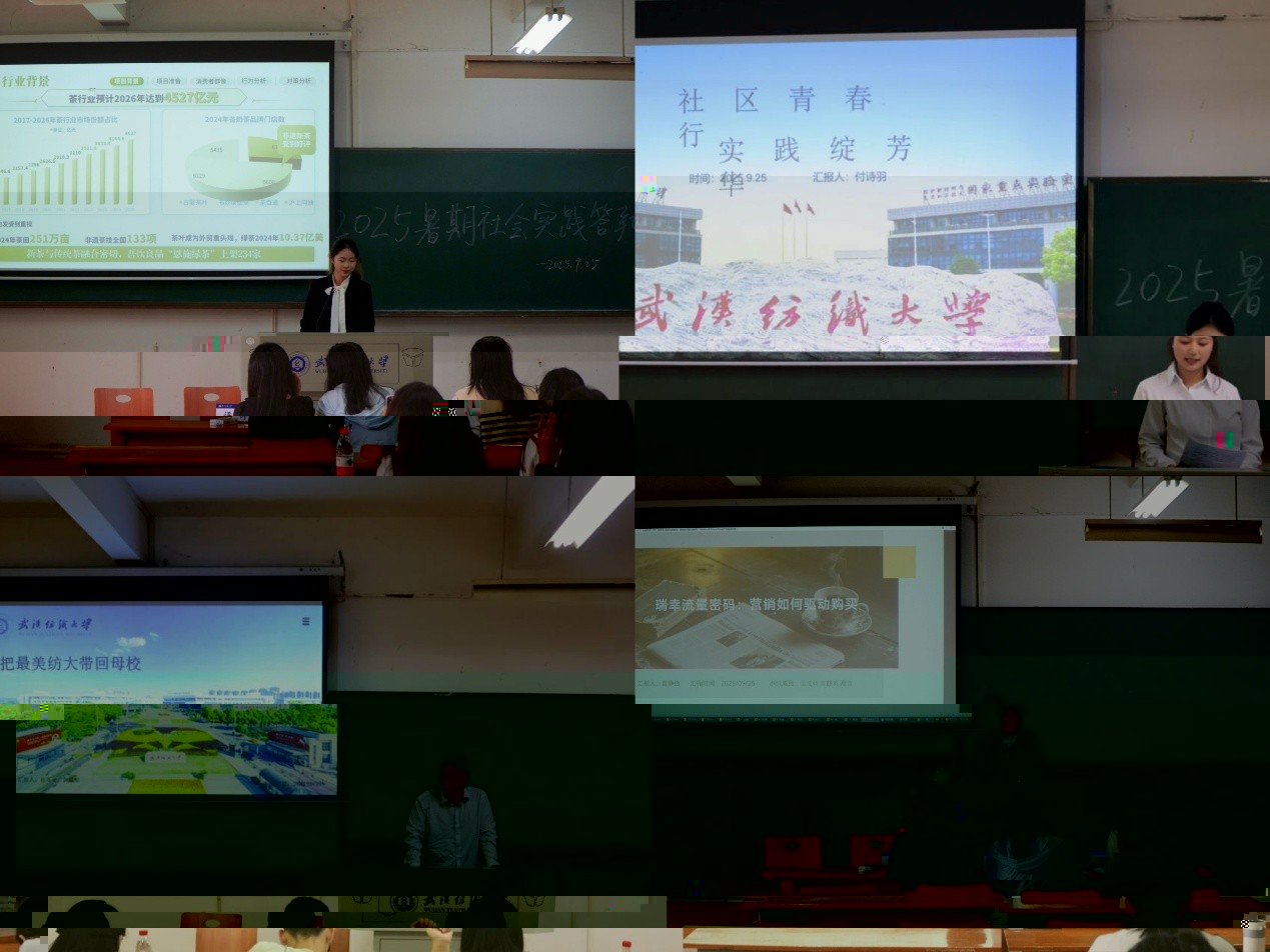 活動伊始,主持人作開場緻辭,闡明社會實踐的意義并說明答辯規則。随後,各參賽團隊代表依次上台,結合精心準備的PPT和視頻,從多角度全面展示實踐成果。本次論壇内容豐富多彩,分為思政實踐組和專業實踐組。思政組項目聚焦思想引領與社會服務,涵蓋“把最美紡大帶回高中母校”招生宣傳、愛心暑期支教、AI賦能社區服務等主題,展現了學子心系社會、甘于奉獻的青春風采。專業組項目則立足經濟學科特色,關注社會現實與發展前沿,涉及紡織類非遺調研、智慧文旅優化探索、文創IP賦能與營銷生态煥新等方向,體現出學生運用專業知識解決實際問題的能力。