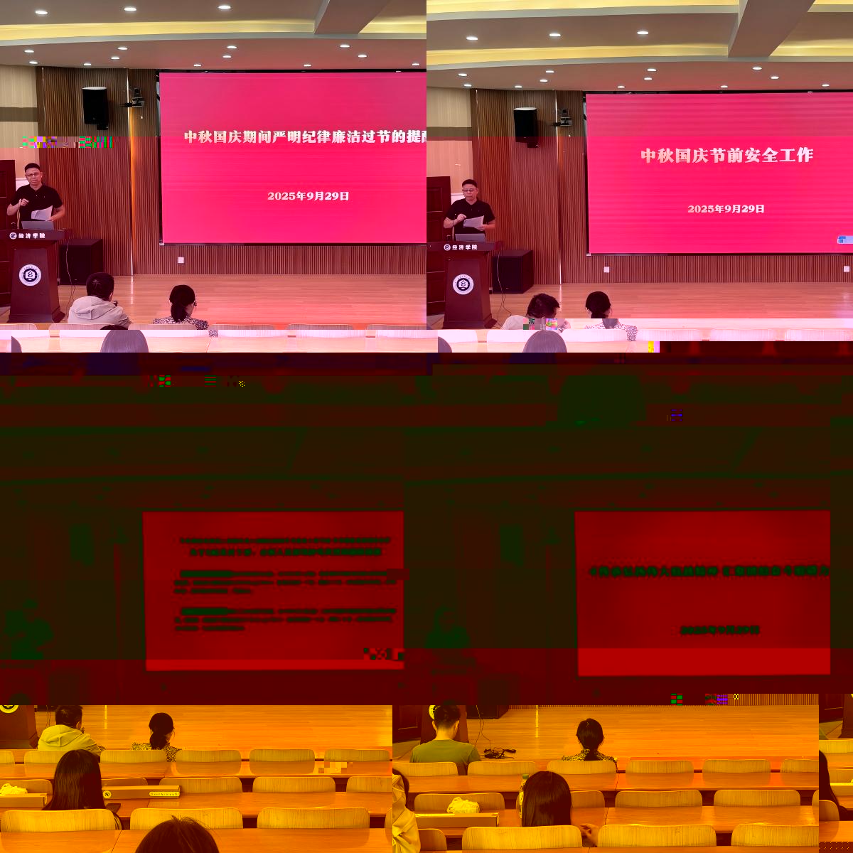 圍繞政治理論學習與作風建設,會議組織全體教職工專題學習《習近平作出重要指示強調锲而不舍落實中央八項規定精神推進作風建設常态化長效化》《在紀念中國人民抗日戰争暨世界反法西斯戰争勝利80周年大會上的講話》《習近平就研究吸收網民對“十五五”規劃編制工作意見建議作出重要指示》等重要文件,通報了上級關于5起黨員幹部、公職人員酒駕醉駕典型問題的案例,并以近期某高校校内交通事故造成一死一傷的慘痛事件,要求全體教職工以案為鑒,嚴守紀律底線,堅決杜絕酒駕醉駕等違法違紀行為,同時強化安全責任意識,時刻繃緊安全之弦。針對即将到來的“雙節”,強調要嚴格落實中央八項規定精神,廉潔過節、文明過節,杜絕違規收送禮品禮金、公款消費等行為,營造風清氣正的節日氛圍。